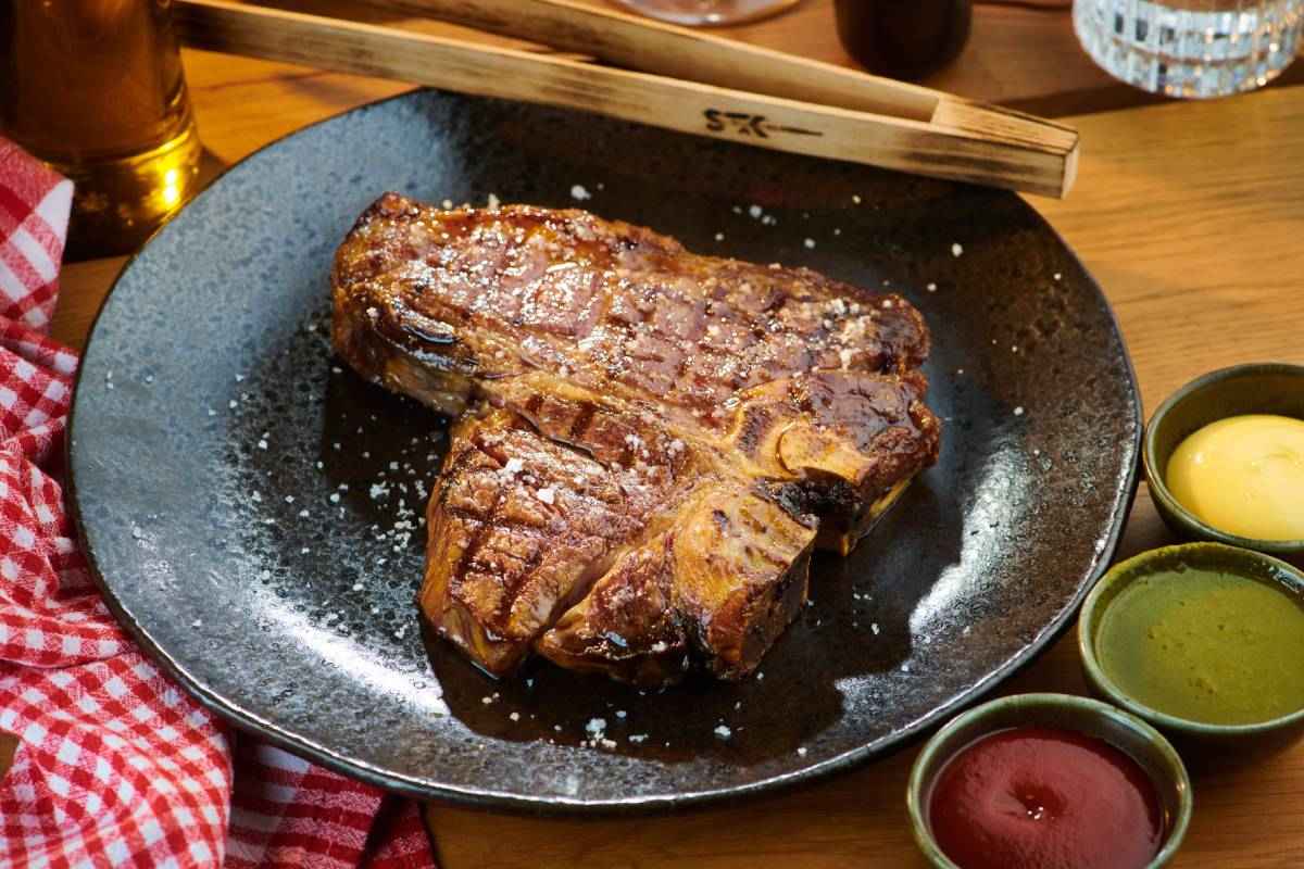 Suroviny k přípravě jídel pochází z regionálních farem, a pozornost tady věnují i samotnému procesu uchovávání a přípravy masa. Vybírat můžete z klasik jako t-bone nebo rib eye steak, a nebo zkusit třeba choco roast beef či sashi T-bone z Finska. K jídlu si můžete vychutnat vína česká, a nebo zkusit vína z mnoha koutů Evropy.