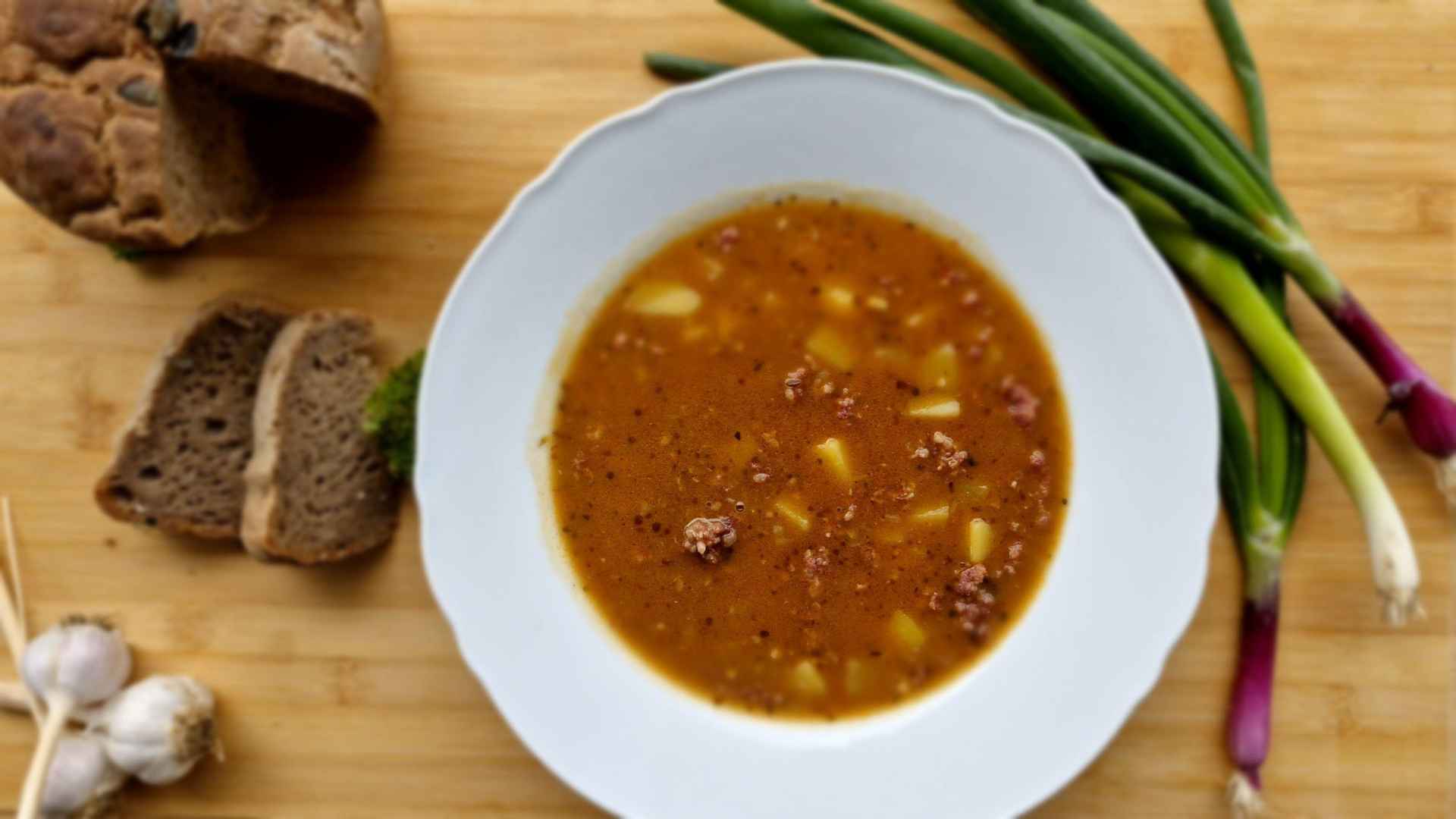 Gulášová polévkaGulášová polévka, jak ji známe z českých hospod i rodinných obědů – hustá, voňavá, s mletým masem a bramborami. Tohle není lehká polévka na uvítanou. Tohle je řádná gulášovka, která zastane klidně i hlavní chod. Navíc je rychle hotová, takže ideální na dny, kdy není čas na tříhodinové dušení kližky. CO BUDETE POTŘEBOVAT
