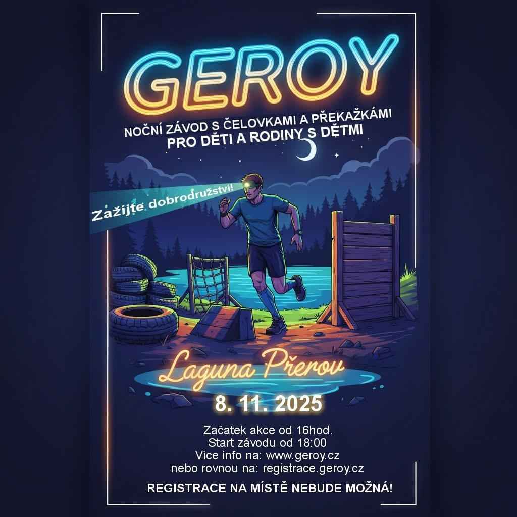 Geroy - Sportovní akce 08.11.2025 od 16:00 do 21:00 hod. Přerov, Přerov | Mapa Noční dětský závod s čelovkami a překážkami, registrace na www.geroy.cz.