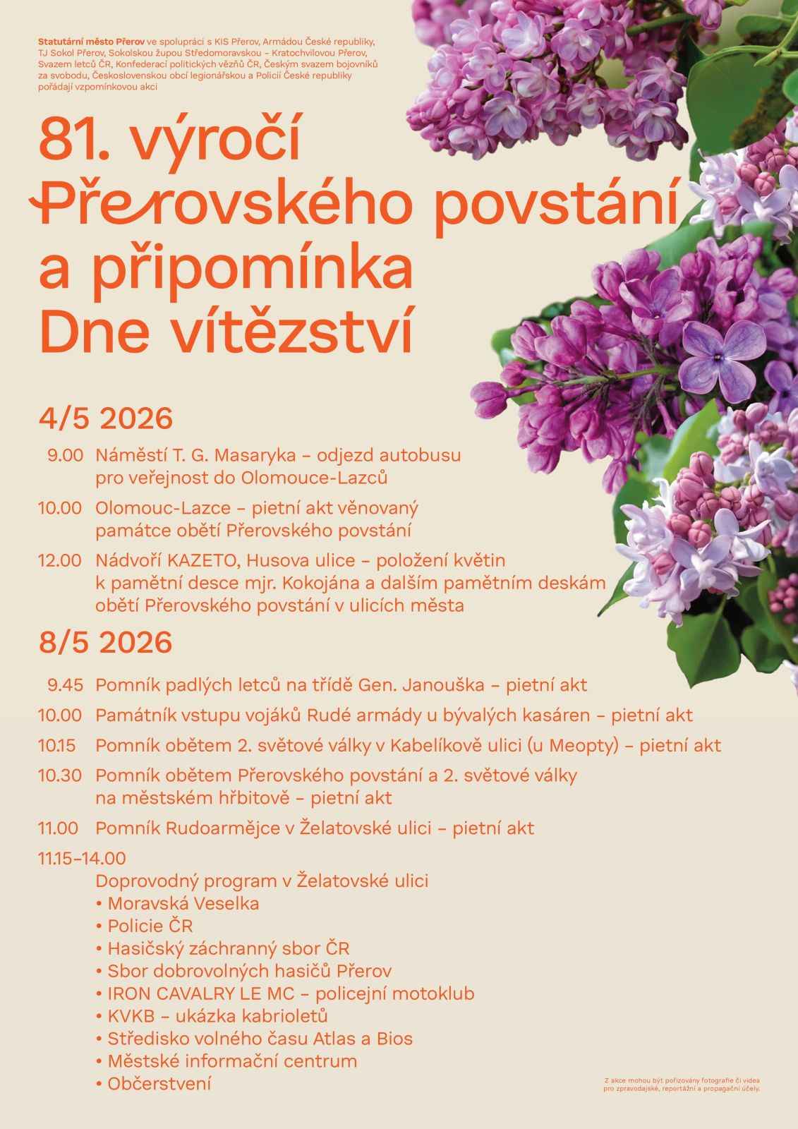 81. výročí Přerovského povstání a připomínka Dne vítězství (Ostatní) Od 04.05.2026 09:00 do 08.05.2026 14:00 hod. Přerov, Přerov Tradiční vzpomínkové akce, položení květin a doprovodný program pro širokou veřejnost. | |