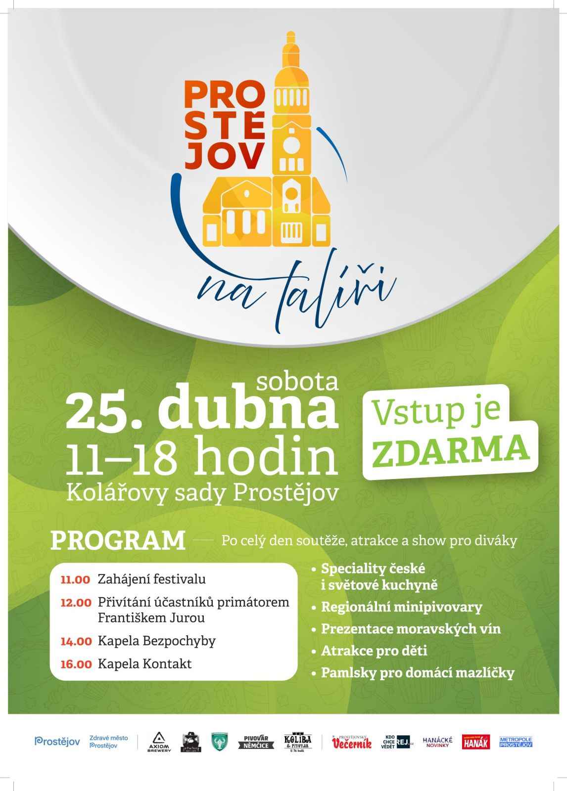 Prostějov na talíři (Pod širým nebem / festivaly) 25.04.2026 od 11:00 do 18:00 hod. Kolářovy sady, Prostějov | Mapa festival pod širým nebem, po celý den atrakce a show pro diváky | |