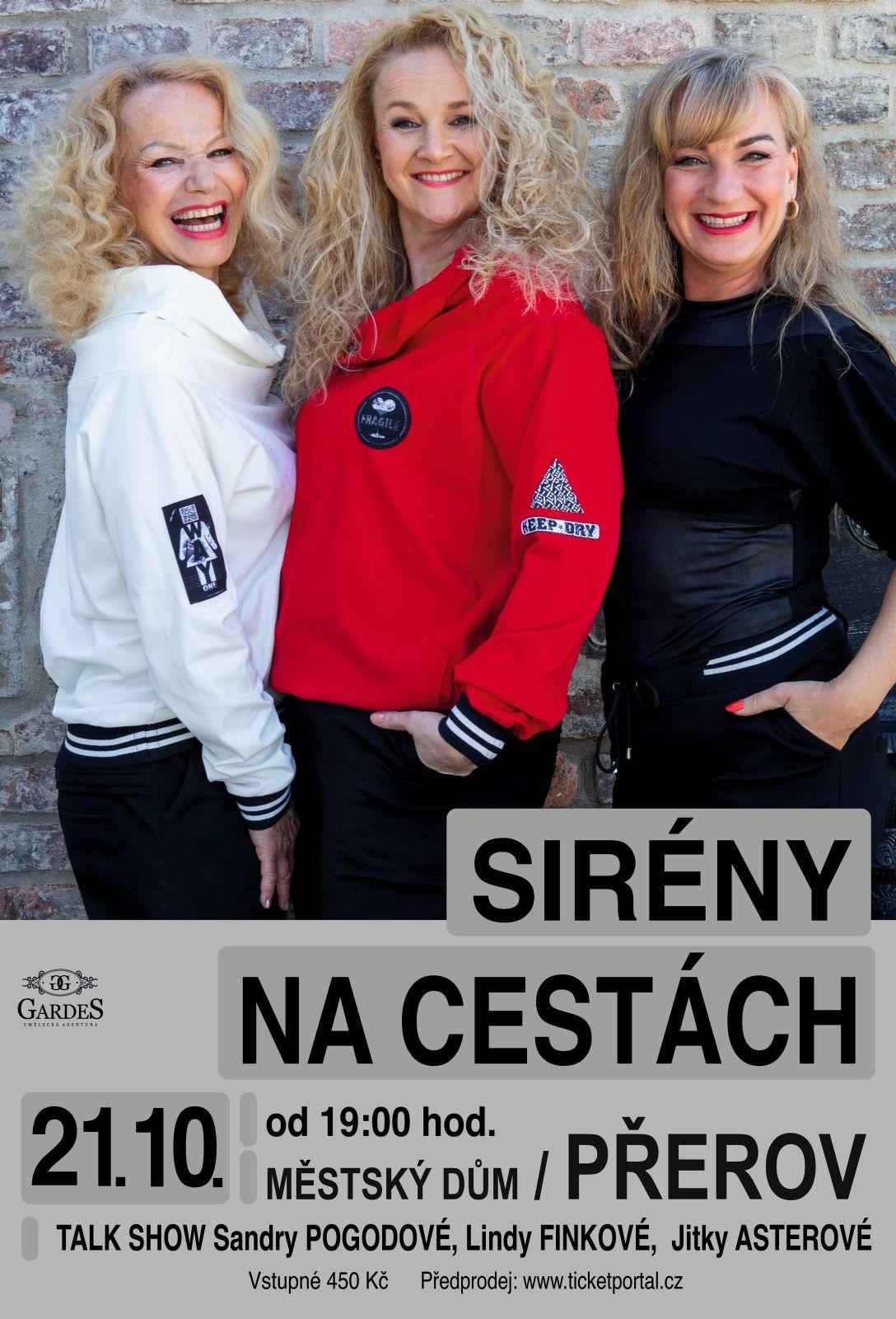 Sirény na cestách - Divadlo 21.10.2025 od 19:00 do 21:00 hod. Městský dům Přerov, Přerov | Mapa Talk show Sandry Pogodové, Jitky Asterové a Lindy Finkové. Předprodej vstupenek v síti Ticketportal.