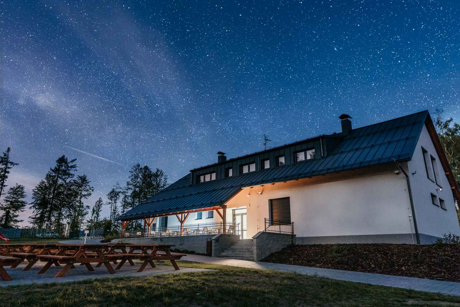 Es gibt einenSchießplatz und einen Pelletschießplatz (Skeet und Universal Trap). Wenn Sie keinen Waffenschein haben, ist das kein Problem. Sie können mit einem Ausbilder das Schießen mit Kurz- und Langwaffen ausprobieren. Außerdem kann man in der Gegend sitzen, sich erfrischen und etwas Leckeres vom Grill essen. Wenn Sie es nicht eilig haben und Ihr Zuhause weit weg ist, können Sie in einer komfortablen Wohnung mit Blick auf den Schießstand wohnen. Es gibt aber auch einen multifunktionalen Spielplatz für Kinder und Workouts, W-Lan und eine Ladestation für Elektrofahrräder. Die Gegend um den Schießstand ist ideal zum Wandern und Radfahren. Der Schießstand befindet sich in einem Naturpark, 15 km vom Zentrum von Olmütz entfernt.