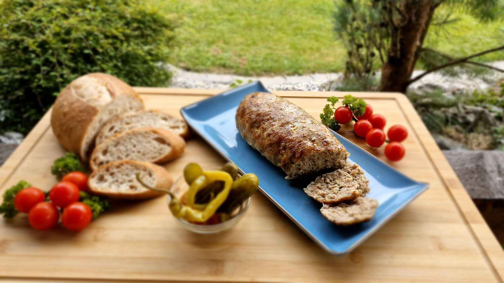 WIE MAN ES MACHTHackfleisch, Salz, Pfeffer, gebratene Zwiebel, Ei, Knoblauch, Majoran und Kreuzkümmel in einer Schüssel mischen und zu einer glatten Masse verarbeiten. Je nach Konsistenz der Fleischmasse nach und nach Semmelbrösel zugeben. Durcharbeiten, einen Laib und dann einen typischen Krapfen formen. Den Teigfladen auf ein Backblech legen, mit Wasser übergießen und mit nassen Händen glatt streichen, damit er nicht reißt. Im Backofen bei 200°C etwa 45-60 Minuten backen. Traditionell wird der Hackbraten mit frischem Brot und Essiggurken serviert. Erwachsene spülen ihn oft mit einem kalten Bier herunter. Hier in (Mittel-)Mähren trinken wir die Klassiker aus der Haná-Brauerei oder die feinen Spezialitäten der TVARG-Brauerei. |
