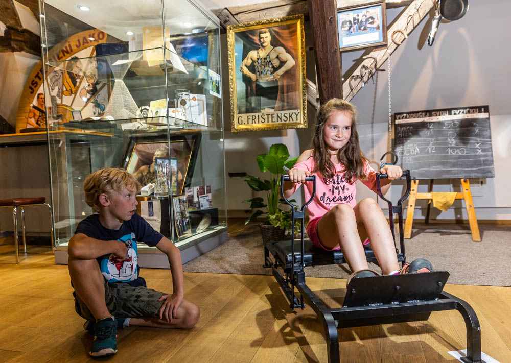 Frištenský war zu Beginn des 20. Jahrhunderts ein Meister des griechisch-römischen Ringens, er reiste fast um die ganze Welt und spielte die Hauptrolle in dem Film Der Henker von Prag. Frištenský war kein gebürtiger Litoveler, aber er fand seine Auserwählte in der Tochter eines örtlichen Brauers. Im Museum können Sie die Originalauszeichnungen sehen und einige seiner Fitnessgeräte selbst ausprobieren . In anderen Ausstellungen werden Sie an das Handwerk unserer Vorfahren erinnert und sehen, wie sich die Musikmedien entwickelt haben - von der mechanischen Jukebox bis zum modernen Grammophon.