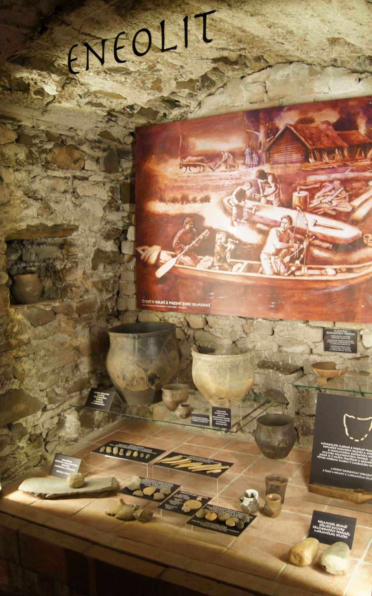 Vorgeschichte von Mohelnice - die Ausstellung von Keramik, Steinwerkzeugen und Schmuck wird durch einen Spielraum ergänzt, in dem man prähistorische Techniken des Kornbrechens und Steinbohrens ausprobieren kann. Außerdem kannst du Archäologe spielen und ein prähistorisches Schiff aus Scherben bauen oder verschiedene Quizfragen und Kreuzworträtsel lösen. In der zweiten Ausstellung "Aus der Geschichte von Mohelnice" wird Ihnen die Geschichte der Stadt und ihrer Umgebung vom 11. bis zum 20. Jahrhundert vorgestellt.