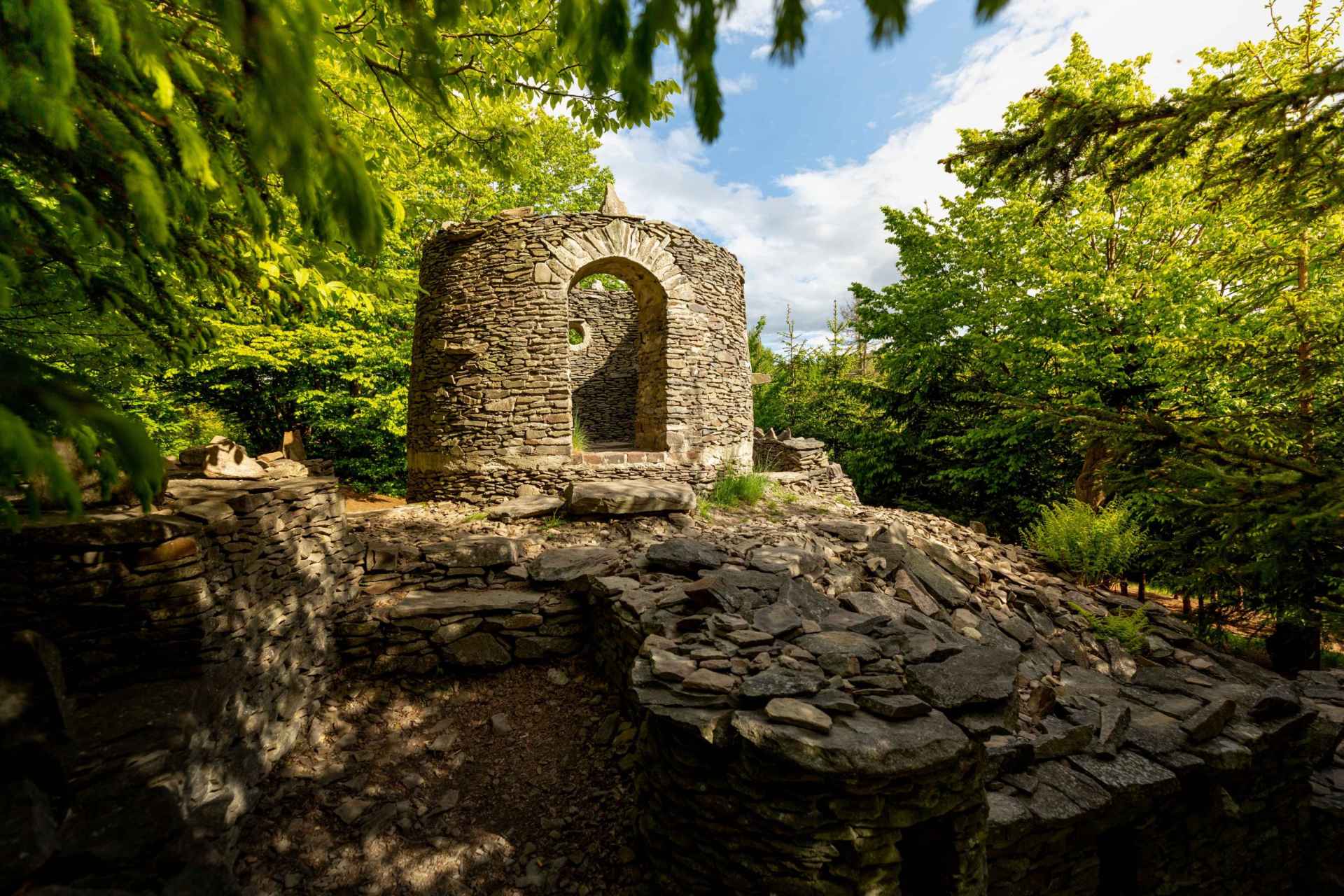 The idea was born in 1975, when Mr. Procházka, as an enthusiastic mushroom picker, began to notice the half-demolished stone walls in the surroundings, which were once built by local farmers. He wanted to build on their legacy, and so in 1982, he began bringing hundreds and hundreds of buckets of stones to the site of the planned construction. Today, dozens of curious day-trippers come to the stone rotunda to see the unusual feat. Thanks to this fact and Mr. Procházka's surname, which in the German infinitive sounds like "spazieren", the castle is nicknamed Špacírštejn.