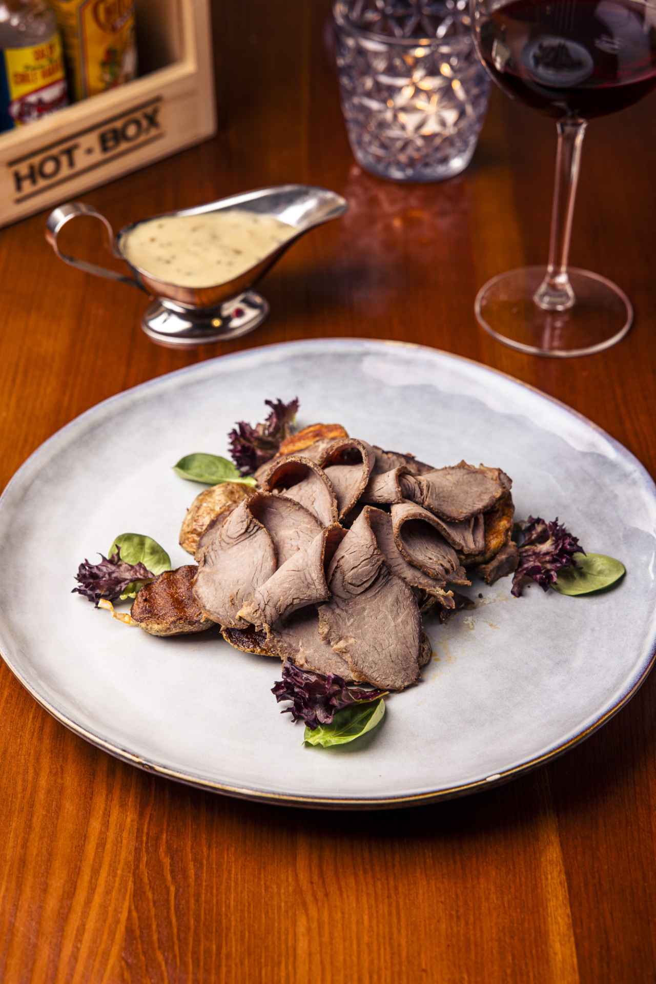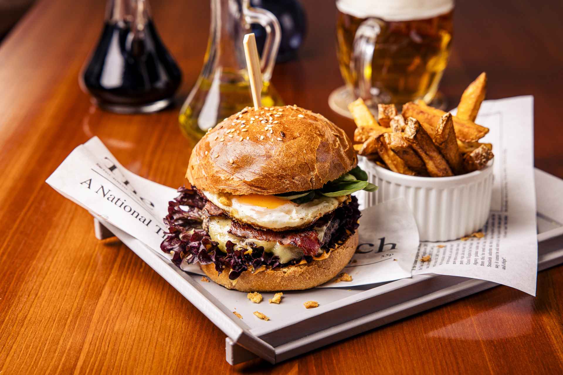 W ofercie restauracji można znaleźć domowe burgery (ich porcja jest uczciwa), pieczone mięsa, świeże ryby, specjały z wędzarni i włoską pizzę.
