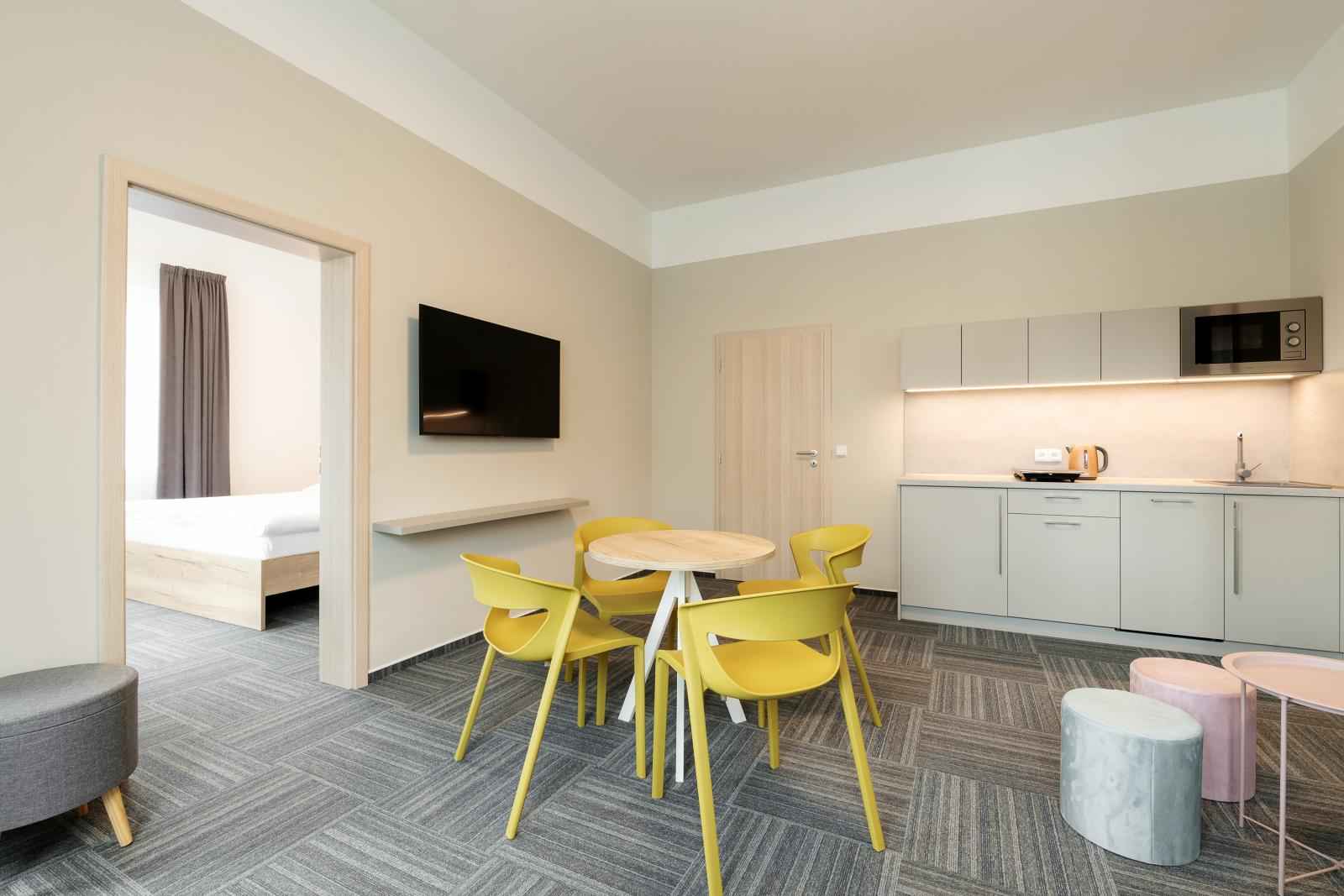 Apartamenty znajdują się dziesięć minut spacerem od centrum Ołomuńca, przy głównej ulicy Wolkerova, zaledwie kilka metrów od przystanku tramwajowego. W pobliżu znajduje się również kilka kawiarni i restauracji. W pobliskim parku można wybrać się na spacer lub urządzić piknik.